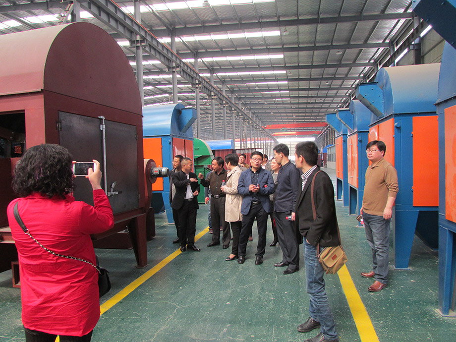 随后,在参会代表跟随公司张彦亭副总来到了生产车间,近距离接触和了解粮食烘干机生产加工过程。车间里,工人正在紧张有序的忙碌,一排排的设备零部件和半成品整洁有序的排列在成品区。张总带领大家首先参观了烘干机零部件加工和部装件组装的工作现场,大家对利盈娱乐公司强大的机械加工和装配能力赞不绝口;随后大家来到成品存放区,这里排列着组装完成的清理筛、提升机、热风炉、小型粮食烘干机等成品设备,公司技术人员箱大家详细讲解了烘干设备的结构组成和工作原理。参会代表纷纷表示:有了这次亲身参观工程经历,对粮食烘干机有了更深入、直观的认识,同时也深深感受到郑州利盈娱乐机械在粮食烘干机领域所做出的突出贡献和取得的辉煌成就。一位市级农机推广站站长表示:作为农机推广管理部门,我们就是应该向农户和农机从业者推广郑州利盈娱乐机械这样的优秀生产企业和他们的优质产品,这样才真正发挥出农机推广的目的和意义,对我国农机产业的发展意义重大,同时推广优质的产品也是对广大农机使用者的负责。