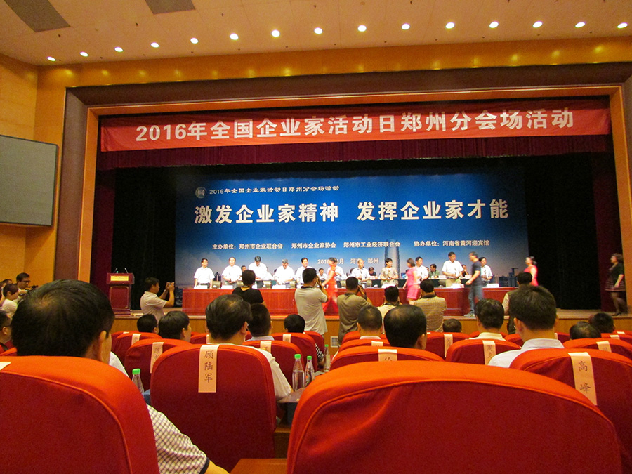 2016年6月16日,2016年全国企业家活动日郑州分会场活动在风景如画河南黄河迎宾馆隆重举行。会议由郑州企业联合会、郑州企业家协会和郑州工业经济联合会主办。郑州市十二届人大市常委会主任、市“三会”会长郝建生,市工信委党委副书记赵荣光,市“三会”常务副会长、理事长张文田,以及“三会”副会长、各县区协会会长和获奖企业代表等450余人一起出席活动。