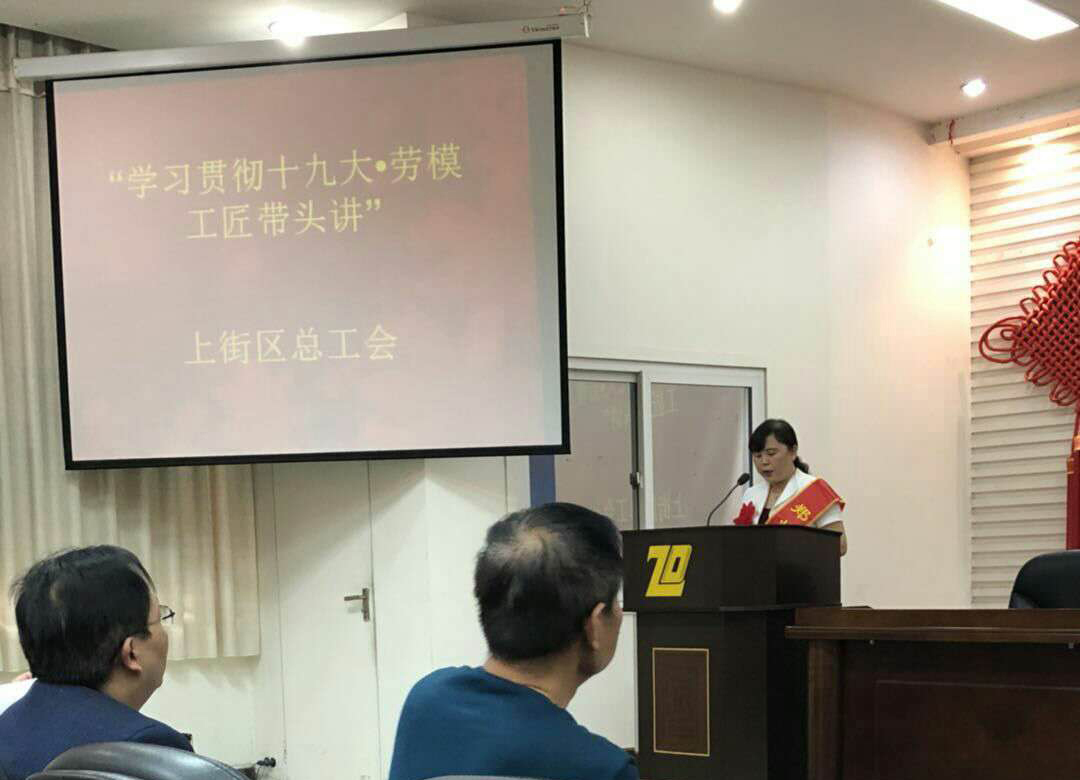 5月8日,在郑州市上街区总工会隆重召开的“学习贯彻十九大 劳模工匠带头讲”宣讲会上,郭桂霞同志作为郑州市劳模代表在宣讲会上讲述自己亲身经历和感悟,向参会的全区各行业职工代表展示了劳模风采和劳模精神。