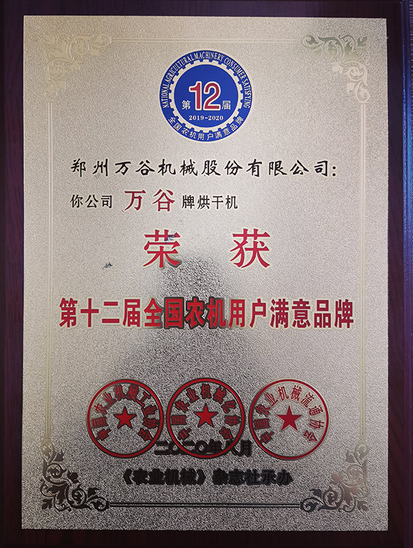 金杯银杯不如全国用户的口碑,郑州利盈娱乐粮食烘干机再获奖
