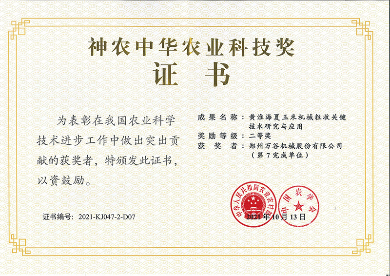 郑州利盈娱乐机械股份有限公司作为主要参与单位,联合中国农业科学院作物科学研究所、河南省农业机械技术推广站等单位共同实施了“黄淮海夏玉米机械粒收关键技术研究与应用”项目的研发,并取得多项国际领先的科技成果。该项目成果的推广应用显著提升了黄淮海夏玉米籽粒收获机械化水平。郑州利盈娱乐机械股份有限公司作为国内知名的粮食烘干机生产厂家,在该项目中承担玉米籽粒烘干工艺、装备的研发和推广应用,并通过影响玉米烘干品质和效率的参数测试和分析,筛选出适合黄淮海区域玉米籽粒烘干的机型和烘干工艺。