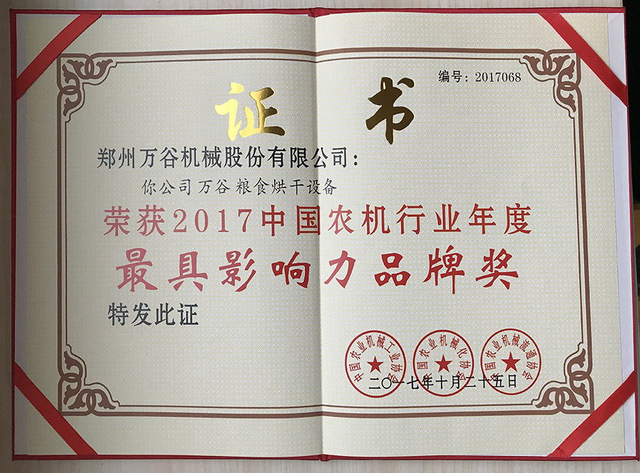 郑州利盈娱乐机械股份有限公司自1998年成立以来,近20年始终专注于粮食烘干机的技术研发和制造,在国内粮食烘干机行业创造了多个骄人业绩,目前公司在技术研发能力、生产质量管理、售后服务保障等全领域在国内同行业中名列前茅。此次郑州利盈娱乐机械粮食烘干机荣获中国农机行业“最具影响力品牌大奖”,是我国农机行业专家级全国用户对利盈娱乐品牌的褒奖和认可。