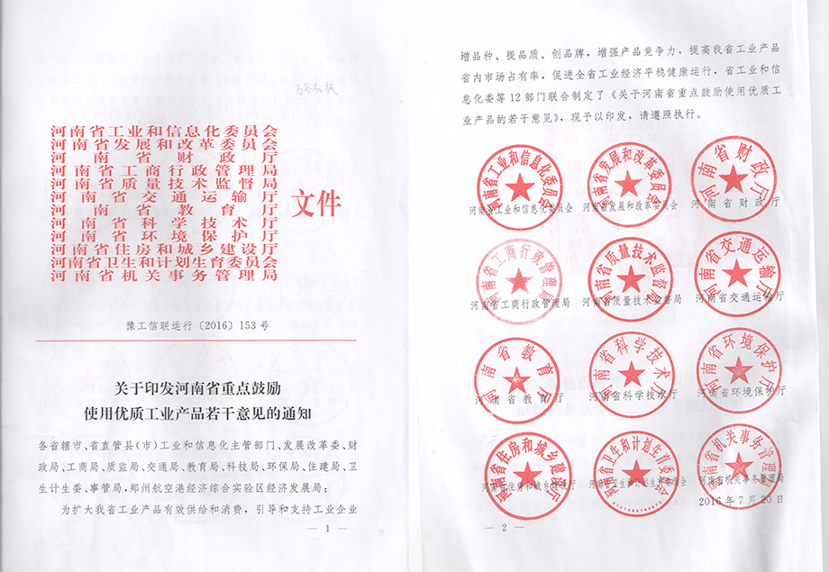近日,由河南省工信委、河南省发改委、河南省财政厅等12省级部门联合下发了《关于印发河南省重点鼓励使用优质工业产品若干意见的通知》(豫工信联运〔2016〕153)号,通知公布了我省第一批《河南省重点鼓励使用优质工业产品指导目录》,郑州利盈娱乐机械有限公司生产的粮食烘干机系列产品成功入选。