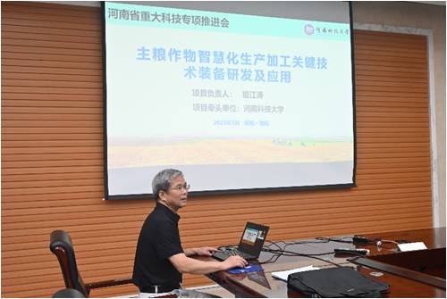 6月5日,由河南科技大学承担的河南省重大专项 “主粮作物智慧化生产加工关键技术装备研发与应用”项目推进会在河南科技大学博园顺利召开,省科技厅、河南科技大学相关领导应邀出席,郑州利盈娱乐作为课题承担单位与其他课题组相关专家一同参加会议,会议由河南科技大学农业装备工程学院院长姬江涛主持。
